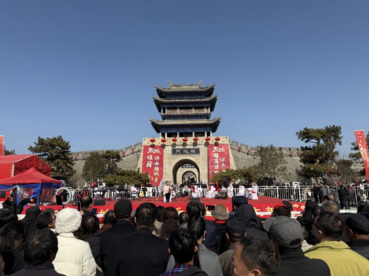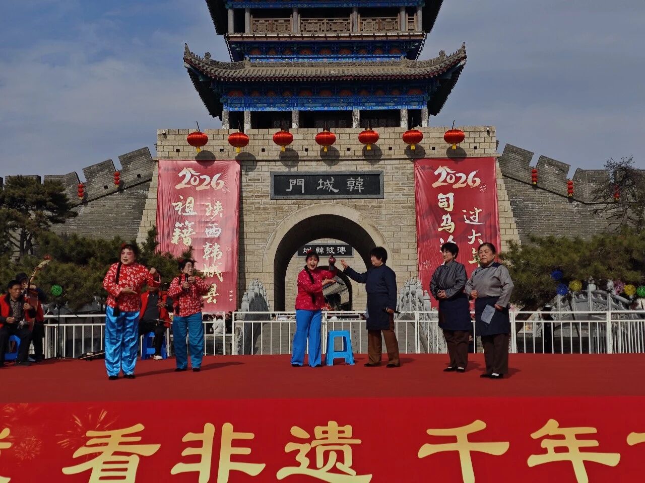 2月18日,大年初二,“祖籍陕西韩城县·司马迁故里过大年”春节群众文体展演系列活动戏曲专场在古城南门广场热闹开演,为现场观众献上一场独具韵味的戏曲文化盛宴。