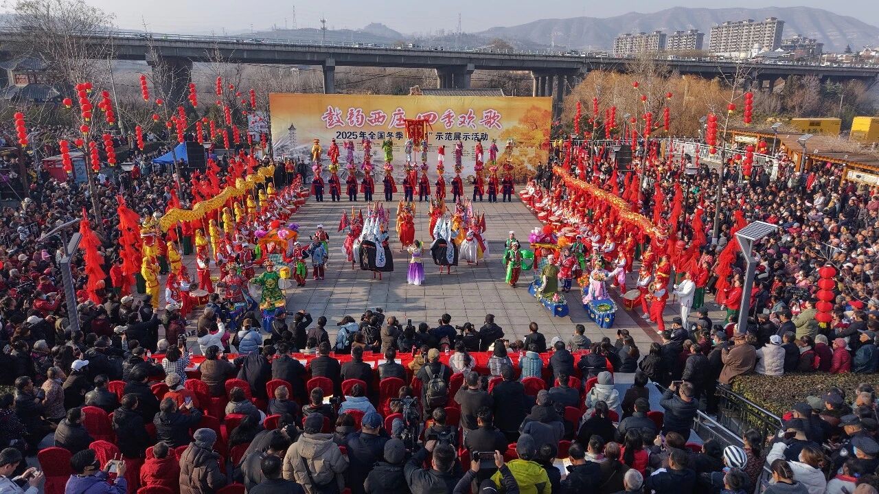 12月16日,农历十月二十七,西庄镇西庄村汶河公园鼓声雷动、欢歌飞扬,“鼓韵西庄·四季欢歌”2025年全国冬季“村晚”示范展示活动正式拉开帷幕。本次活动由文化和旅游部公共服务司指导,中国文化馆协会、渭南市文化和旅游局、中共韩城市委宣传部主办,市文旅局承办,西庄镇、市文化馆实施,以“群众参与,文化共享”为理念,将文艺演出与非遗展示深度融合,呈现了一场兼具乡土气息与文化底蕴的视听盛宴,奏响了乡村振兴的文化强音。