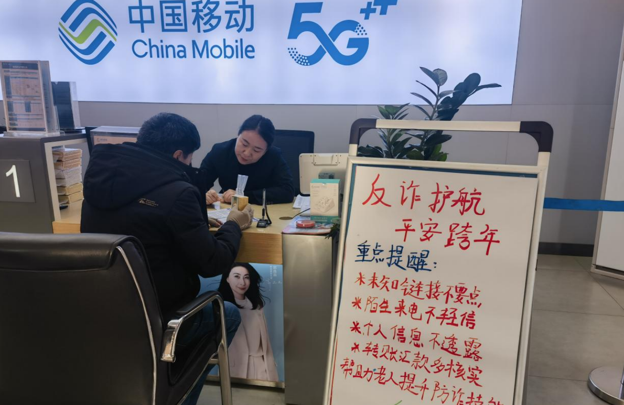 元旦佳节将至,为切实提升广大客户的反诈防骗意识,守护市民财产安全与通信安全,陕西移动韩城分公司以各营业厅为核心宣传阵地,全面开展“平安跨年 反诈同行”宣传活动,为市民度过一个安全祥和的节日保驾护航。