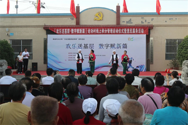 近日,“欢乐送基层・数字赋新篇——论功村线上积分管理启动仪式暨惠民服务活动”在芝川镇论功村举行。活动在欢快的歌舞表演中拉开帷幕,村民们齐聚一堂,共同见证“数字・论功村”线上积分管理机制的正式启动,享受文化惠民带来的欢乐与便利。