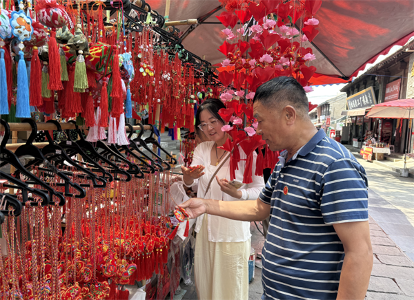随着端午佳节临近,金城大街已弥漫着香包的香味。街道两旁,色彩斑斓、造型各异的香包挂在摊位上,成为古城一道独特而亮丽的风景线,吸引了众多游客和市民驻足观赏、选购。