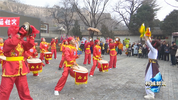 春节期间,精彩的社火表演,在党家村景区文星塔广场上演。来自西庄村社火队的演员们,满怀着新春的喜悦,洋溢欢快的笑容,挥舞敲打着锣鼓,热情地进行着表演。伴随着欢快的鼓点,秧歌舞、舞龙、“旱船”“背芯子”等各类特色社火表演精彩呈现,吸引游客们驻足参观,一声声的叫好和喝彩,将年味推到了高潮。