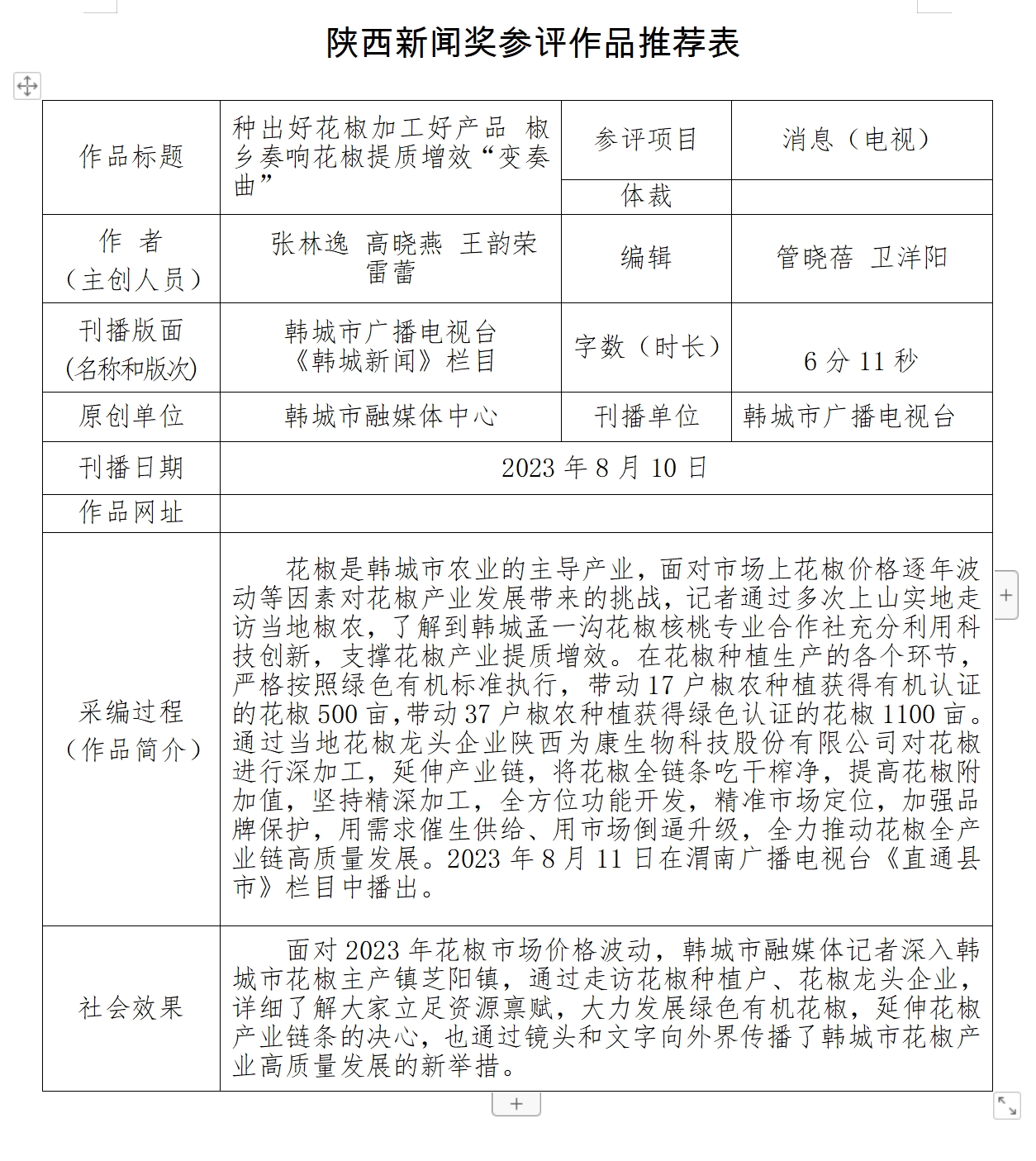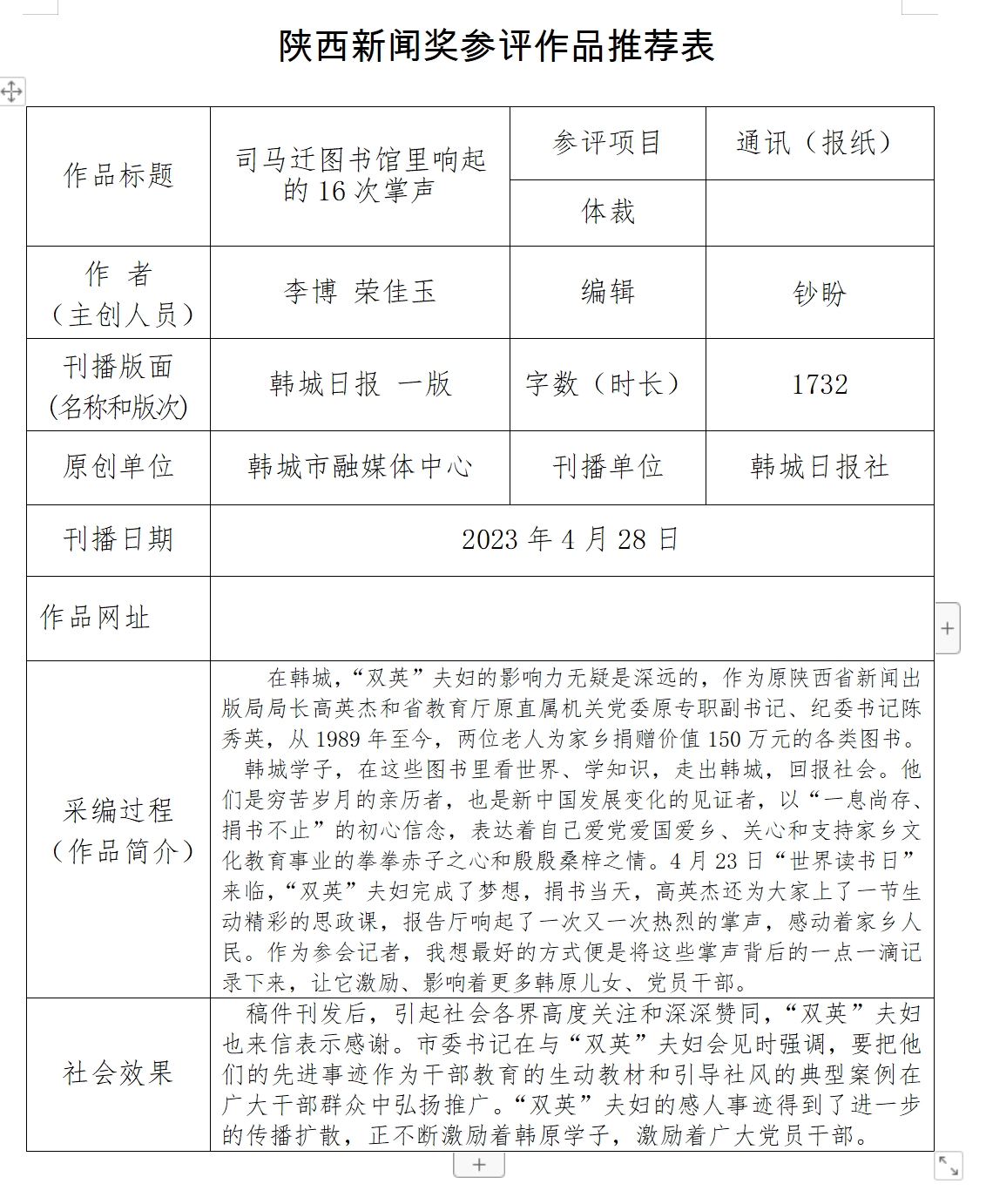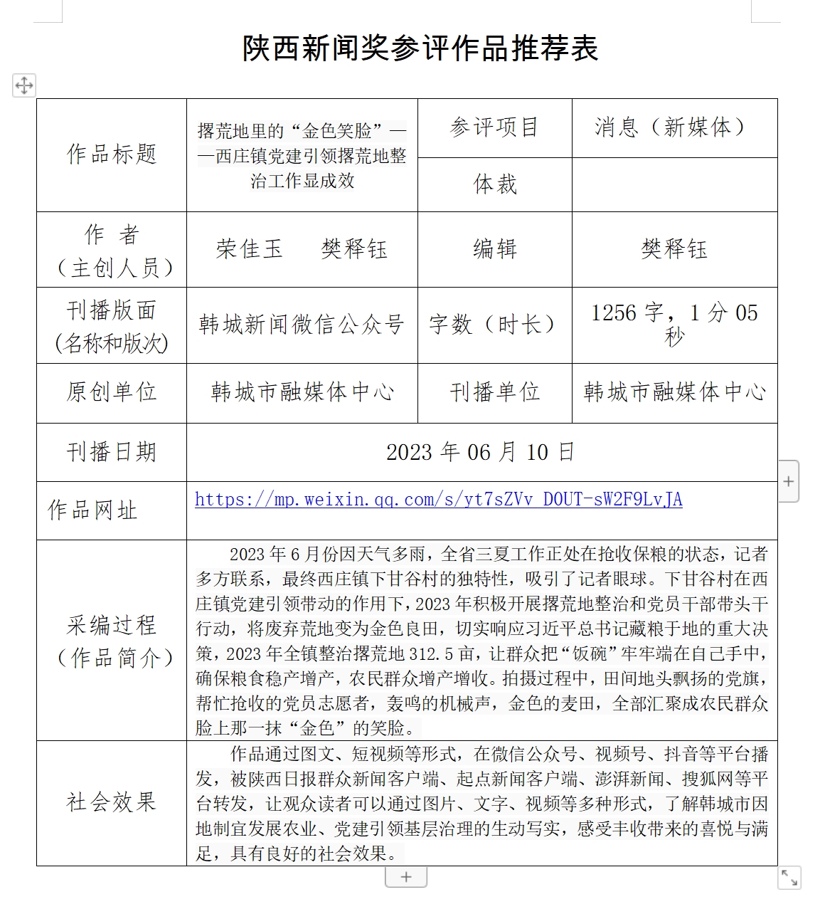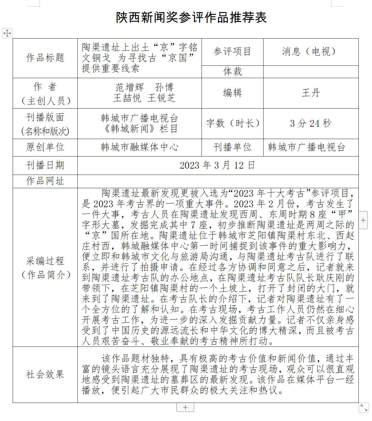附件:参评2023年度陕西新闻奖作品推荐表16个