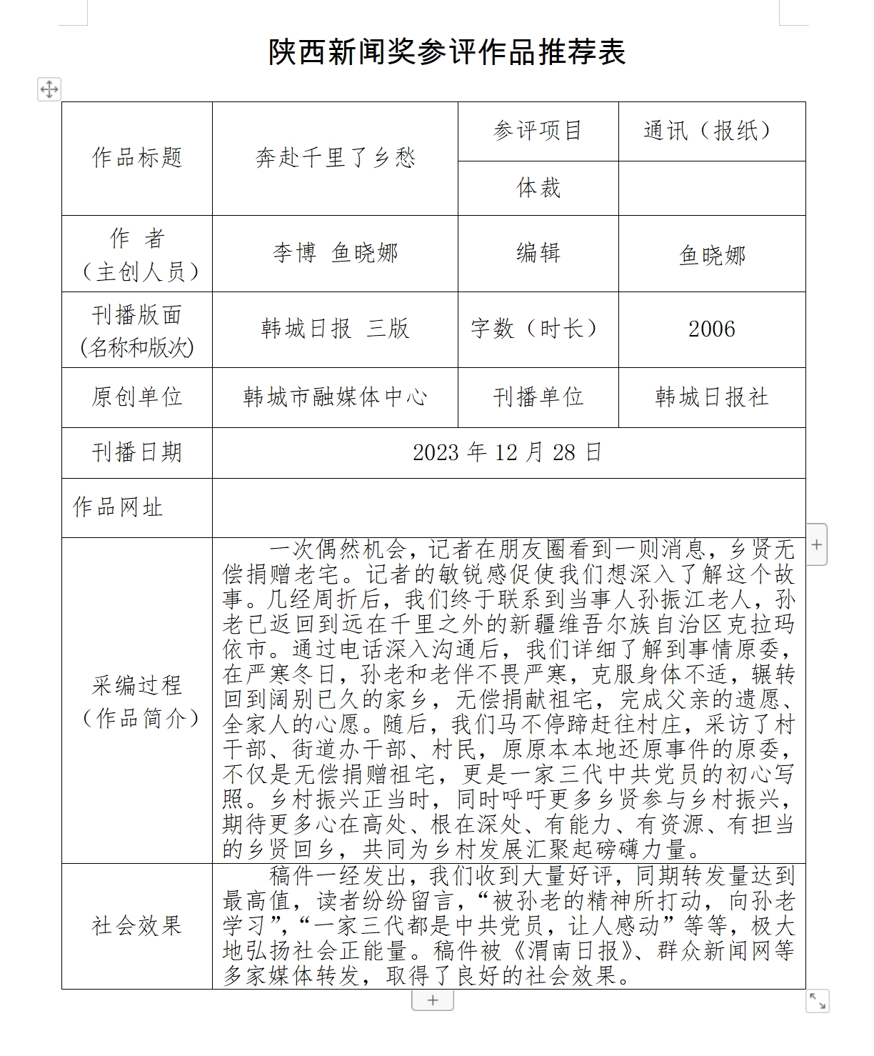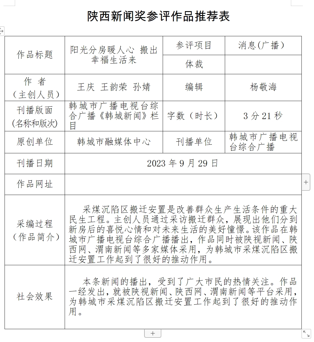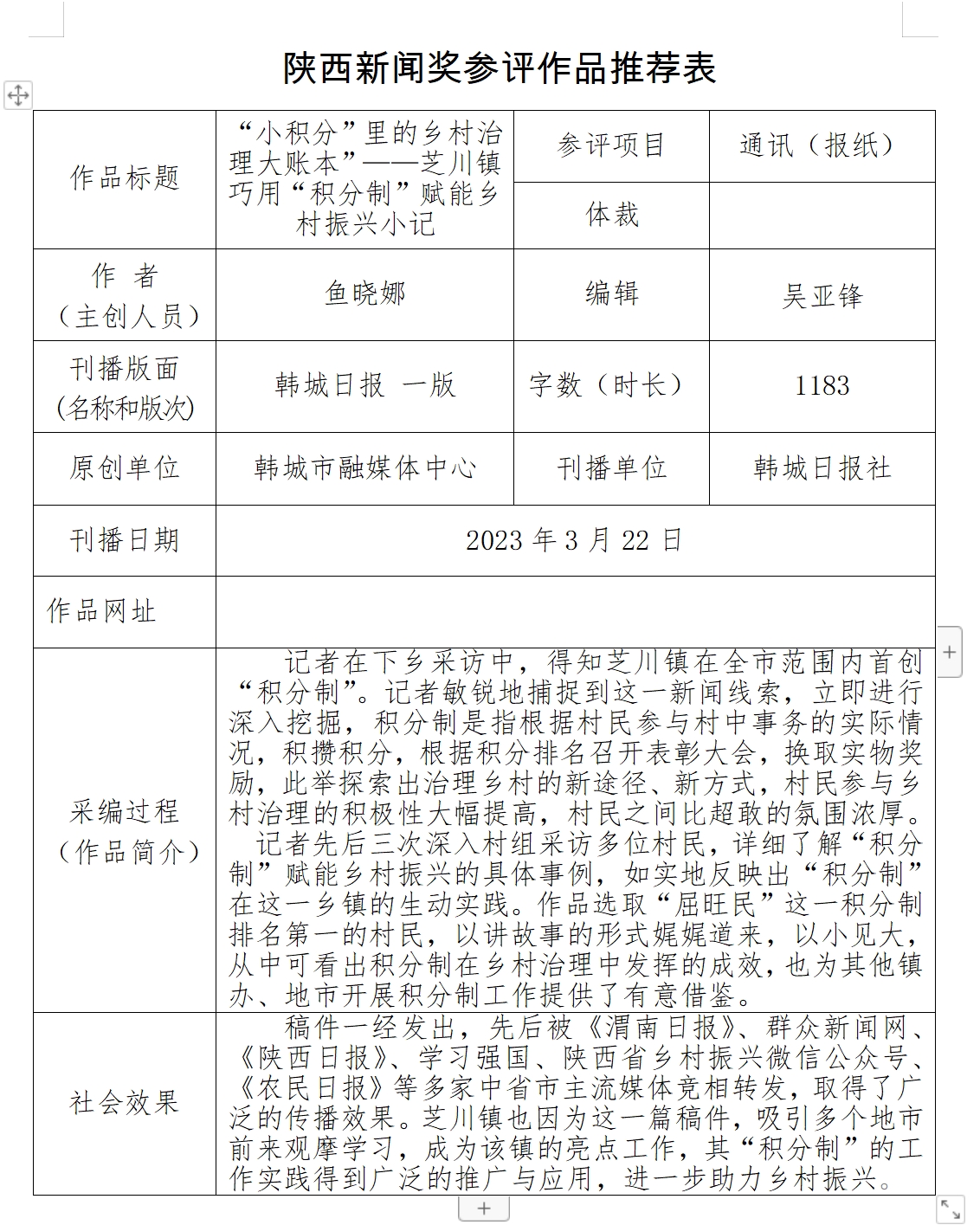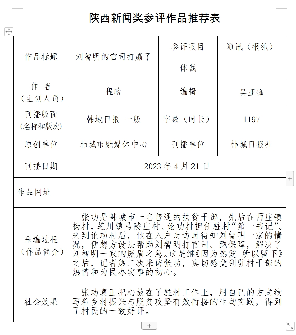 附件:参评2023年度陕西新闻奖作品推荐表16个