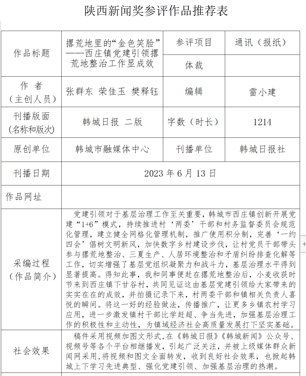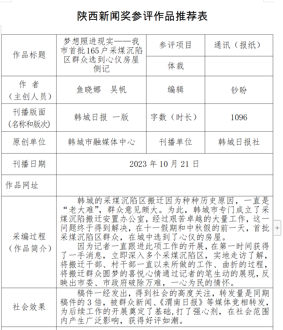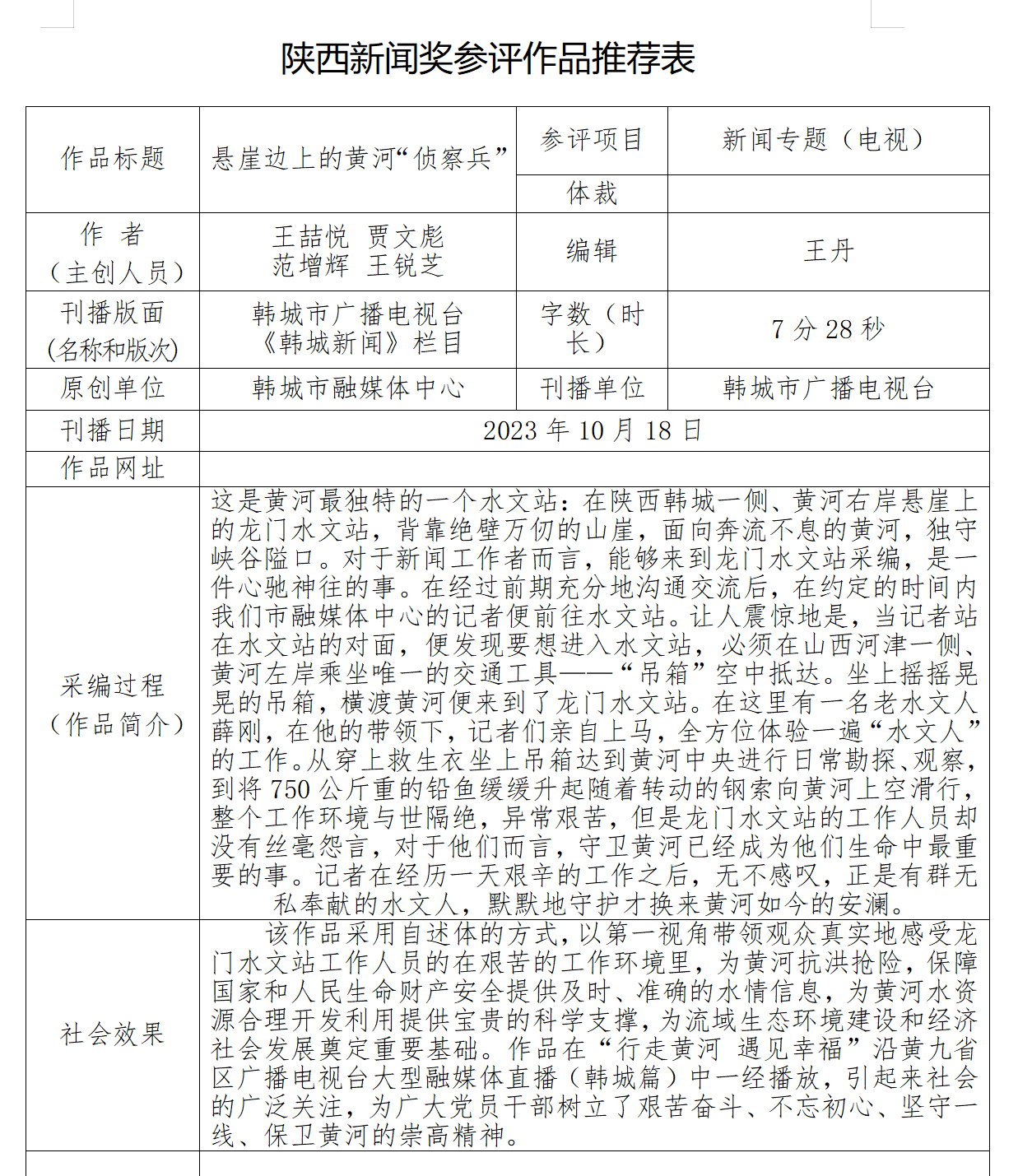 附件:参评2023年度陕西新闻奖作品推荐表4个